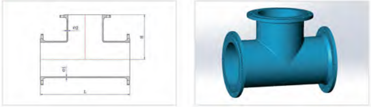 En raison de sa construction à bride robuste, le TEE All Flodge est particulièrement adapté pour exiger des conditions de service à haute pression et à haute température et est souvent la solution préférée pour les systèmes de transport de liquide à grand diamètre. Key characteristics include:All three connections rely on bolting to mating flanges.A suitable gasket must be placed between each flange face to ensure sealing integrity.The pressure rating of the fitting is determined jointly by the flange class (e.g., 150#, 300#, 600#) and material (common grades include carbon steel A105/A350 LF2, stainless steel A182 F304/F316, alloy steels, and acier inoxydable duplex), tandis que le corps de Tee lui-même doit se conformer aux normes de pression applicables. Les dimensions adhèrent strictement aux normes de bride pertinentes (par exemple, ASME B16.5 ou B16.47) et les normes du corps TEE (par exemple, ASME B16.9).