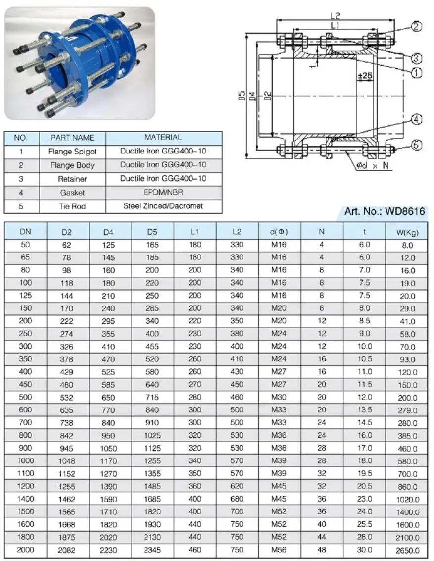 • Joint de démontage, bride de type rigide percée au PN16Joint de démontage, bride de type rigide percée au PN16