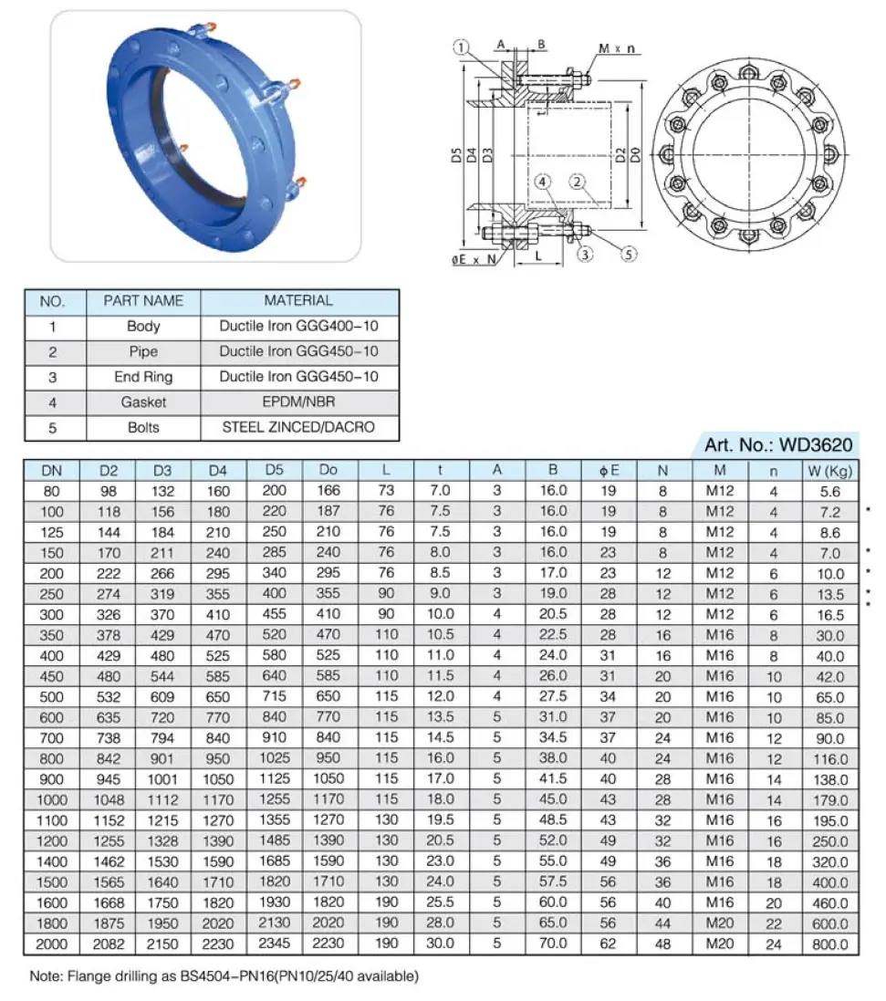 • Adaptateur de bride pour tuyau en fer ductile (dédié)Adaptateur de bride pour tuyau en fer ductile (dédié)
